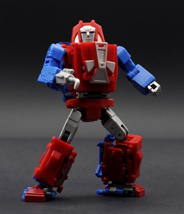 OTS-09 Grump stands 4.5 inches tall in robot mode and transforms into an off road truck. Grump features several die-cast parts and comes with an array of accessories including his rifle, personality alter circuit card, a welding torch, and an alternate happy face.