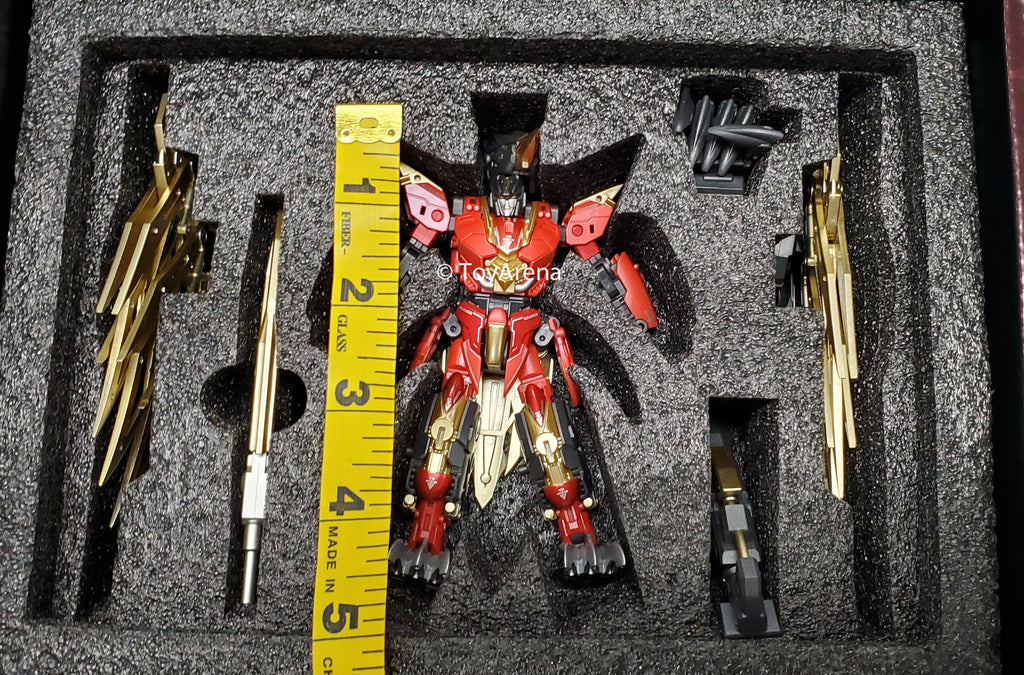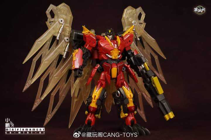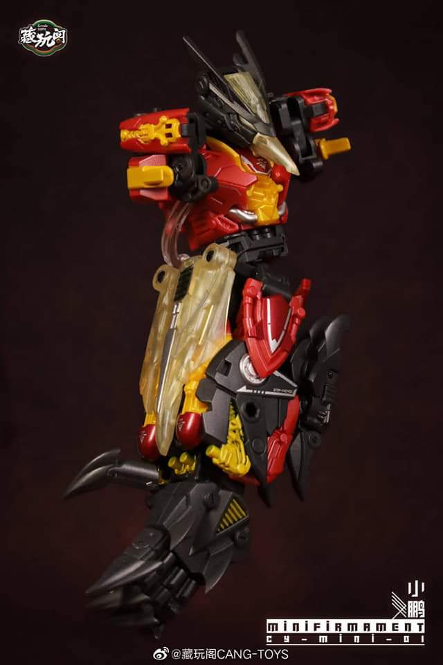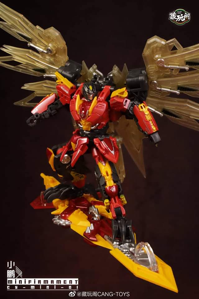 Cang-Toys transforming figure series expands with this mini figure of CY-Mini03 Mini Firmament! Firmament transforms from robot to phoenix and is fully articulated.