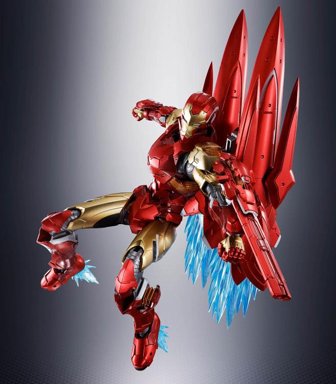 "TECH-ON AVENGERS" is a new S.H.Figuarts collaboration between Marvel Comics and Bandai Spirits! The first release in the series is Iron Man! It's a whole new look for Iron Man, designed by Eiichi Shimizu. The body is finished in metallic colors and the frame is die-cast metal for a high-quality feel. Abundant options are the hallmark of the TECH-ON AVENGERS series, and Iron man does not disappoint! You can even replicate Iron Man's DH-10 mode.