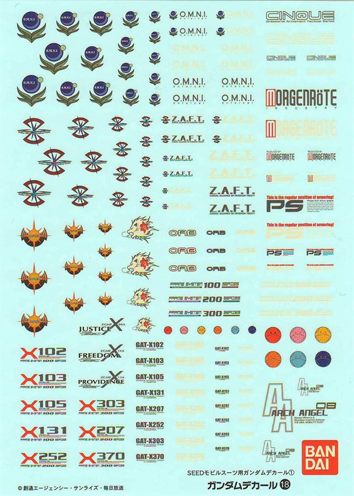 Bandai Gundam Decal #18 For 1/100 Gundam Seed Series MS Water Slide/Transfer Decals