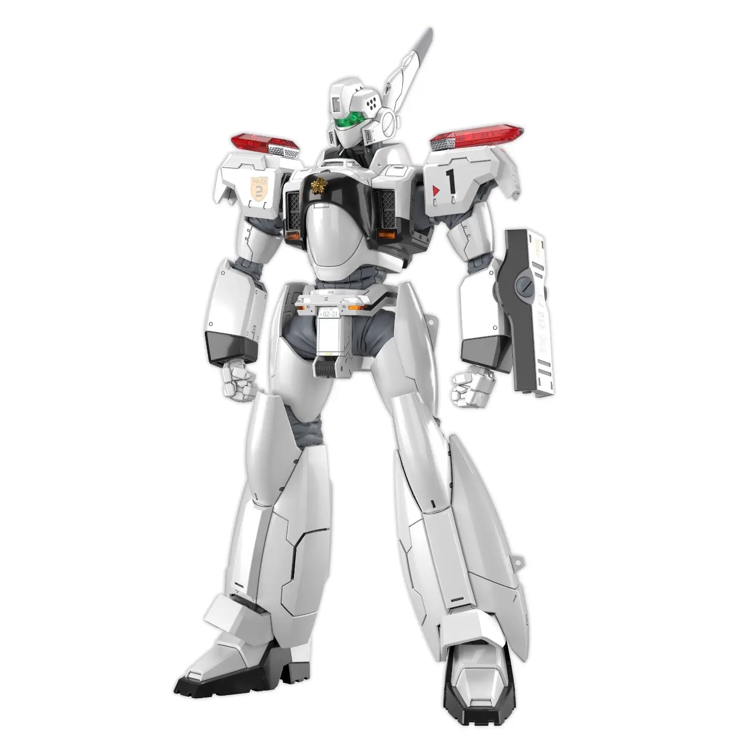 The RG 1/48 AV-98Plus Ingram Kai is made with Bandai’s newest color separation and part-division technology. Built to RG standards, it features sharp detailing and accurately recreates the series’ design and weapon mechanisms. Silver components use realistic metallic gloss injection for a true metal-like finish, while clear and finely molded parts capture details like the shoulder warning lights and chest police emblem. Marking stickers are also included.