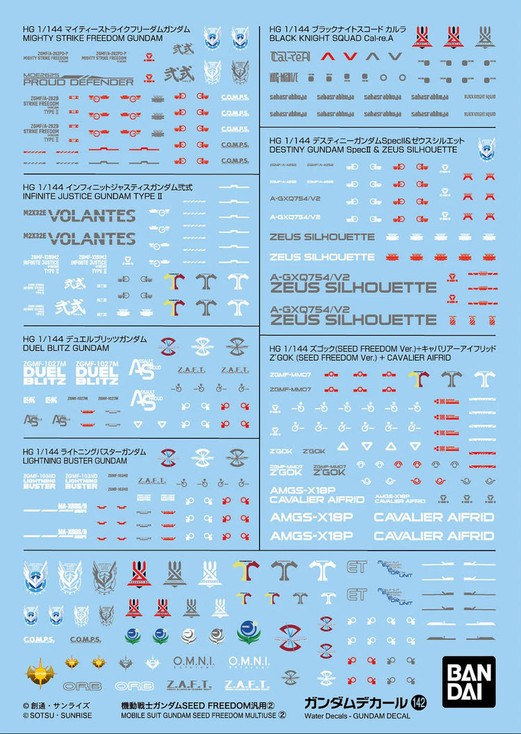 Bandai Gundam Decal #142 For Mobile Suit Gundam Seed Freedom Multiuse #2 Water Slide/Transfer Decals