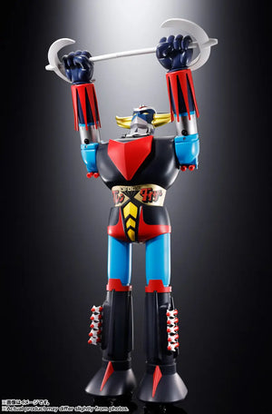 The Jumbo Machinder returns for the 50th anniversary of UFO Robot Grendizer! Standing about 600mm tall, it features arm-mounted Dizer Punch launchers and shoulder Harkens that combine into the Double Harken weapon. It also includes the Great Battle Weapon ZZ-2 Super-Rapid-Fire Missile, with additional missiles on the arms and legs that can be launched.