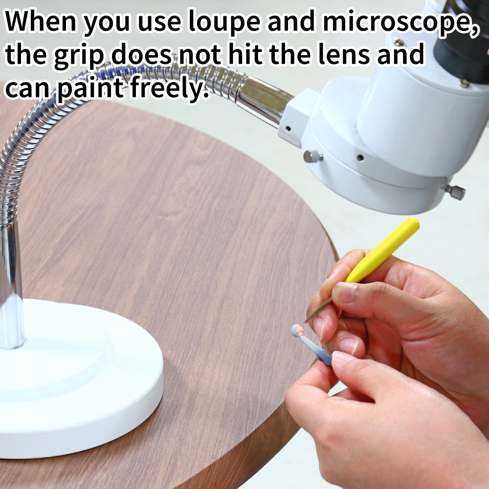 When you use loupe and microscope, the grip does not hit the lens and can paint freely.