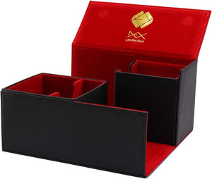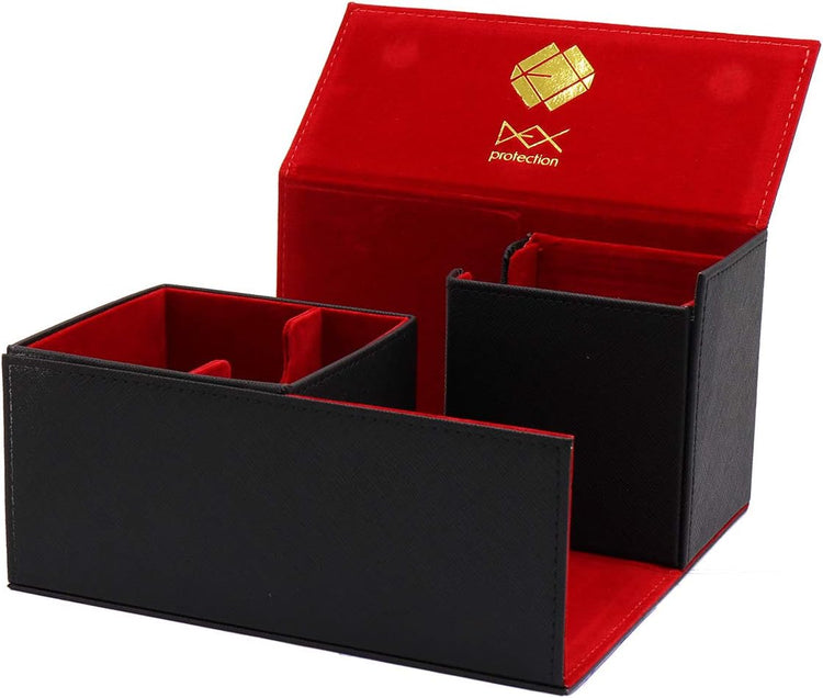 The Creation Line Deck Boxes are the signature deck boxes here at Dex Protection. Each box has our signature, real velvet interior and a luxurious Saffiano exterior for superior style and protection. The Creation Line uses reinforced magnets to provide a tight closure and security for your treasured decks. The large model is the mother ship of the Creation Line. Two internal compartments hold 100+ and 75+ double sleeved, standard sized cards with additional space for extra accessories.