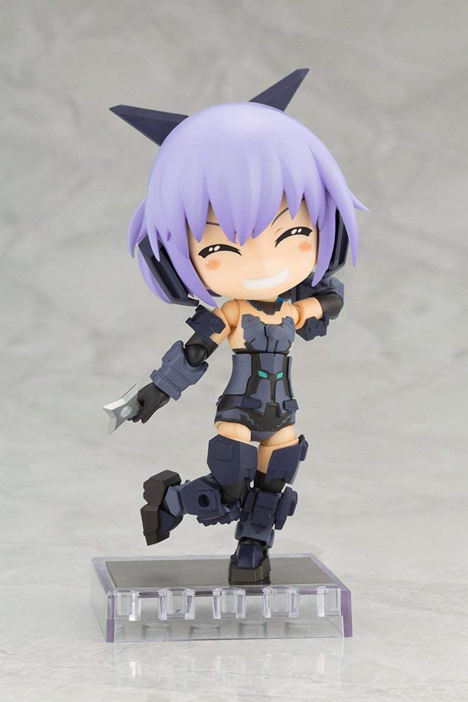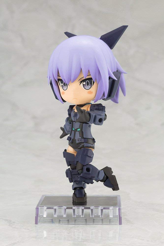 Kotobukiya’s cute chibi figures, Frame Arms model kits, and Frame Arms Girls lines collide in this frame Arms Girl Jinrai Cu-poche poseable figure. This Cu-poche version of Frame Arms Girl Jinrai features multiple points of articulation and magnets in the feet for extra stability on the included base. Jinrai come with various weapon parts for more posing options.