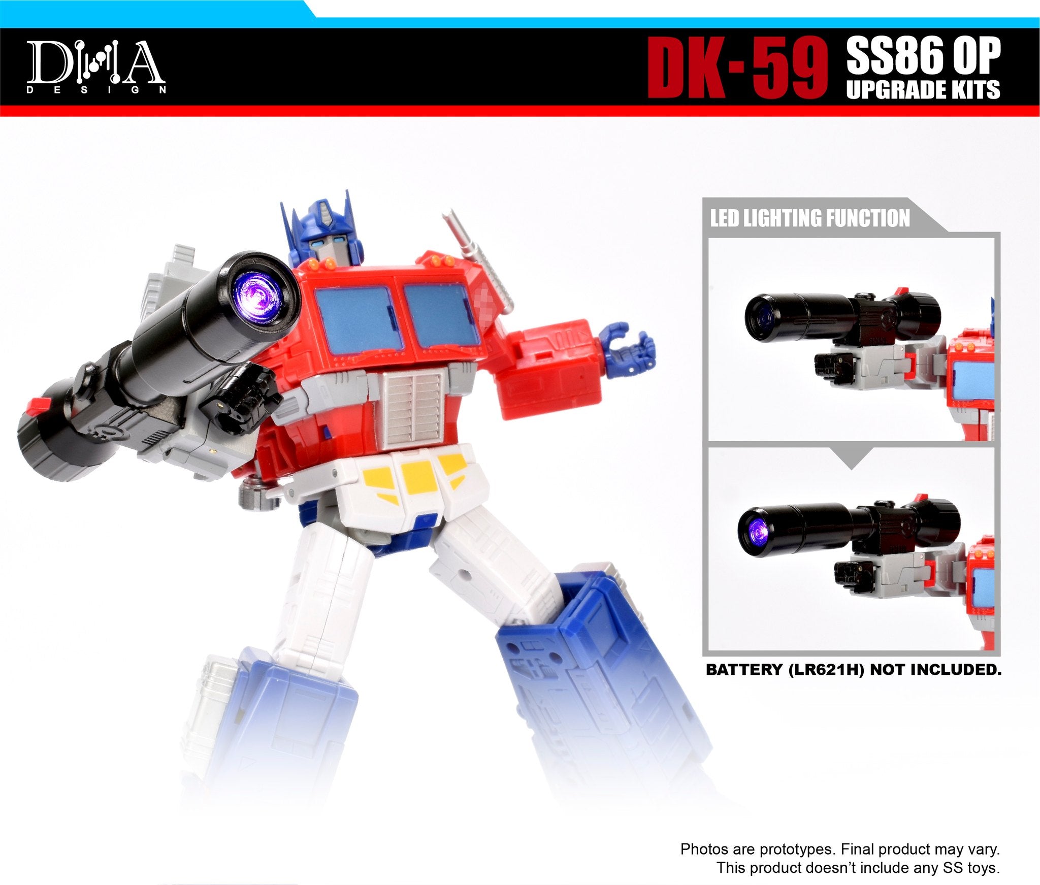 The DK-59 Upgrade Kit is the perfect enhancement for your Transformers SS86 Optimus Prime figure (sold separately). This high-quality upgrade kit includes a range of newly designed and improved accessories and attachments that seamlessly integrate with your Optimus Prime figure, offering enhanced playability and display options.