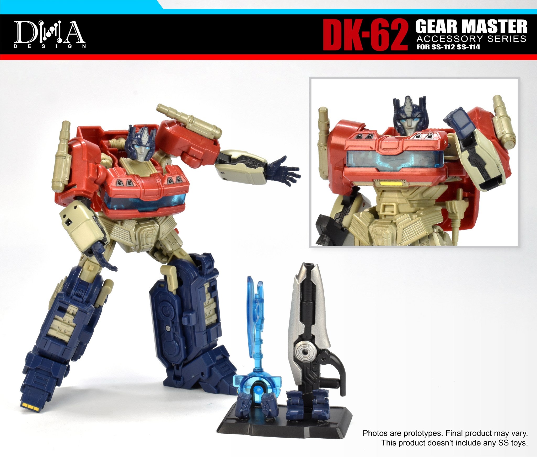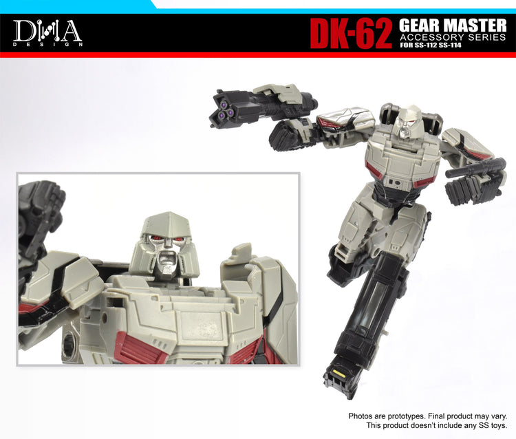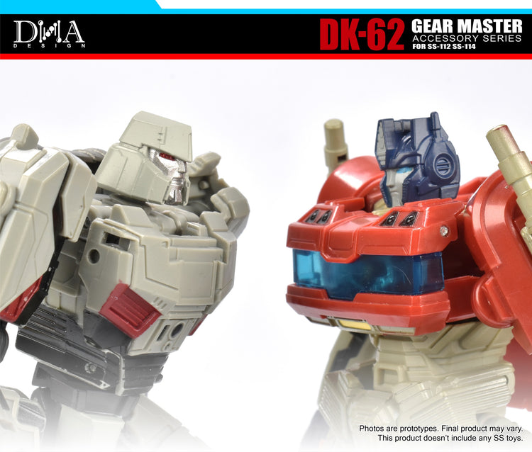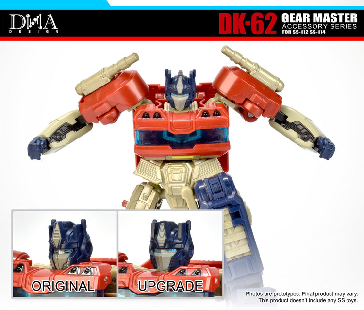 The DK-62 Upgrade Kit contains new and improved accessories and attachments compatible with the Transformers: One Deluxe SS-112 Optimus Prime and Deluxe SS-114 Megatron.