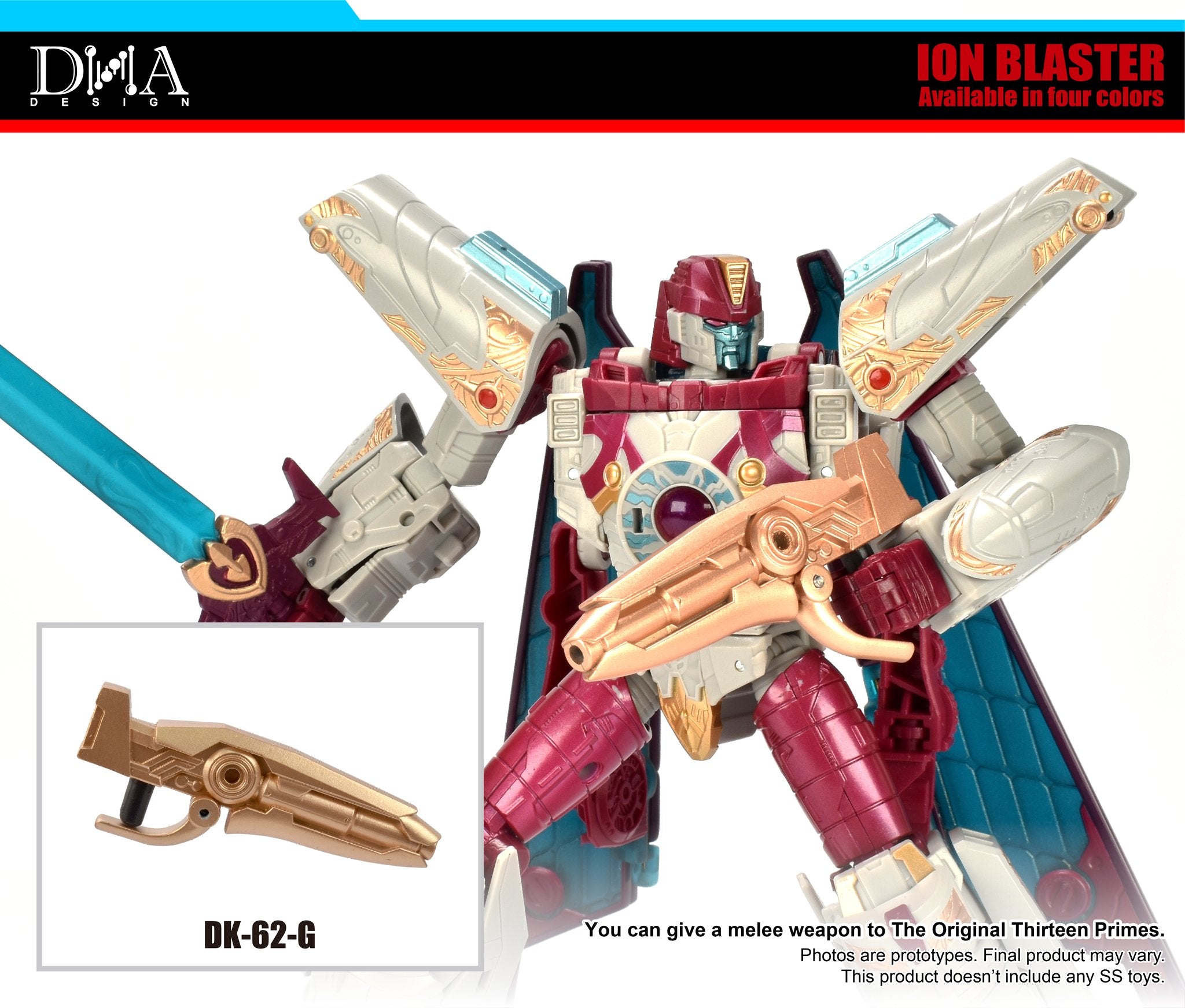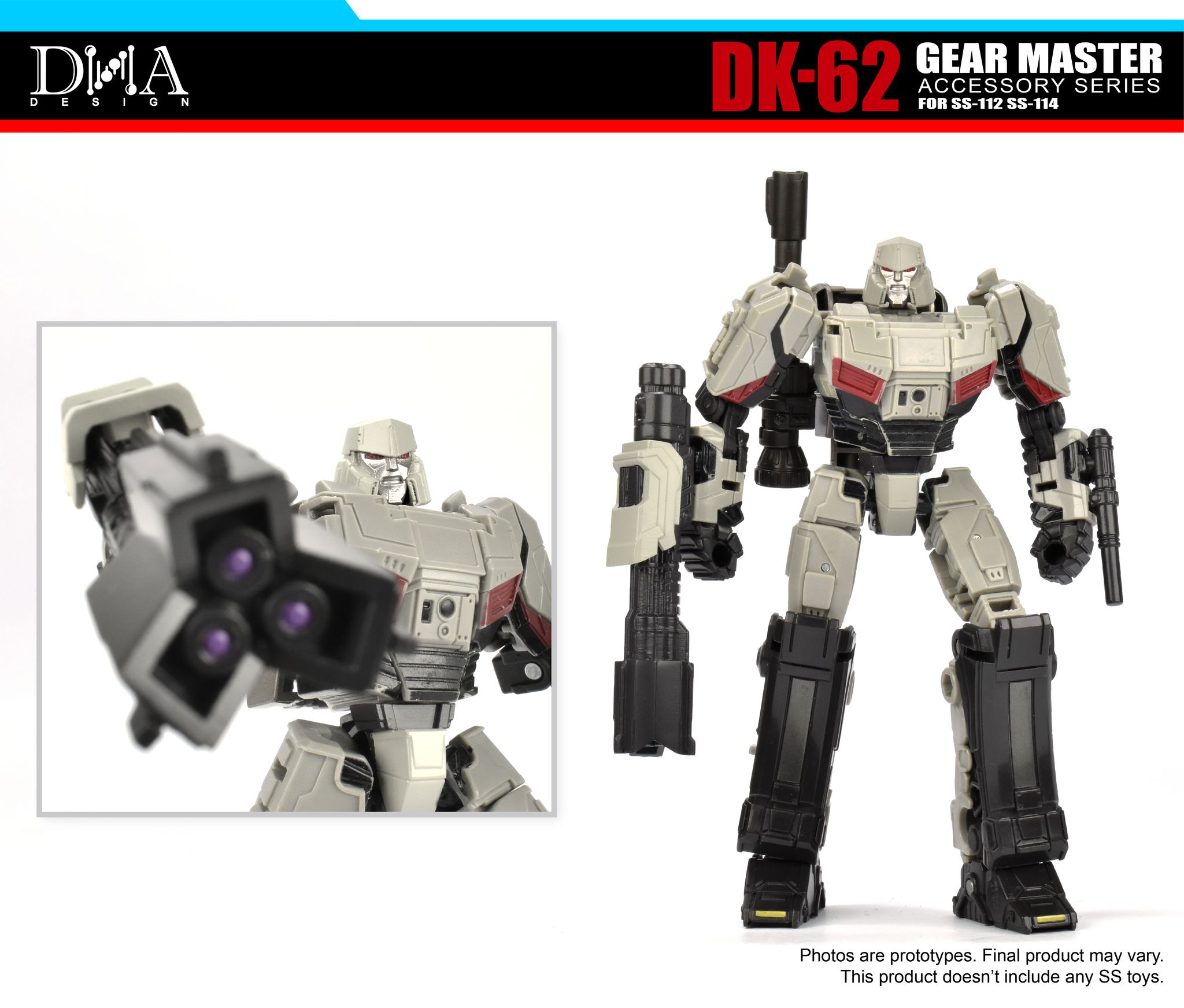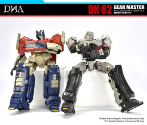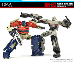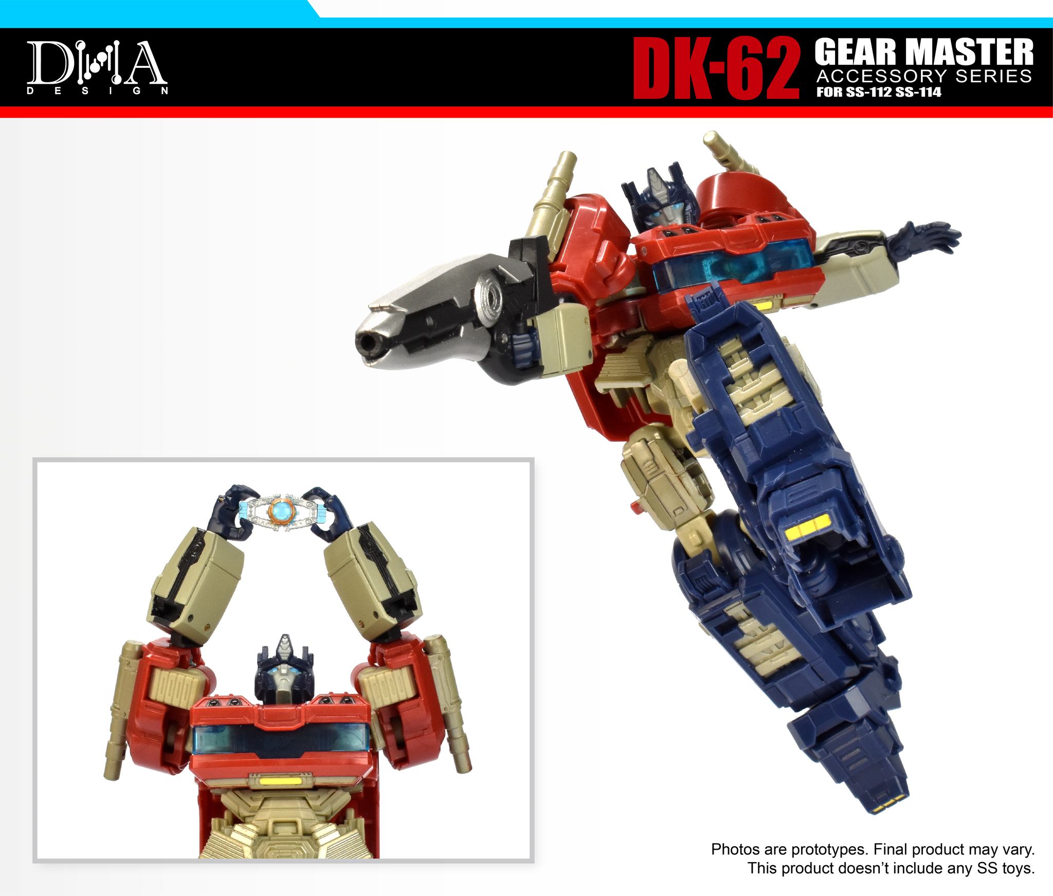 The DK-62 Upgrade Kit contains new and improved accessories and attachments compatible with the Transformers: One Deluxe SS-112 Optimus Prime and Deluxe SS-114 Megatron.