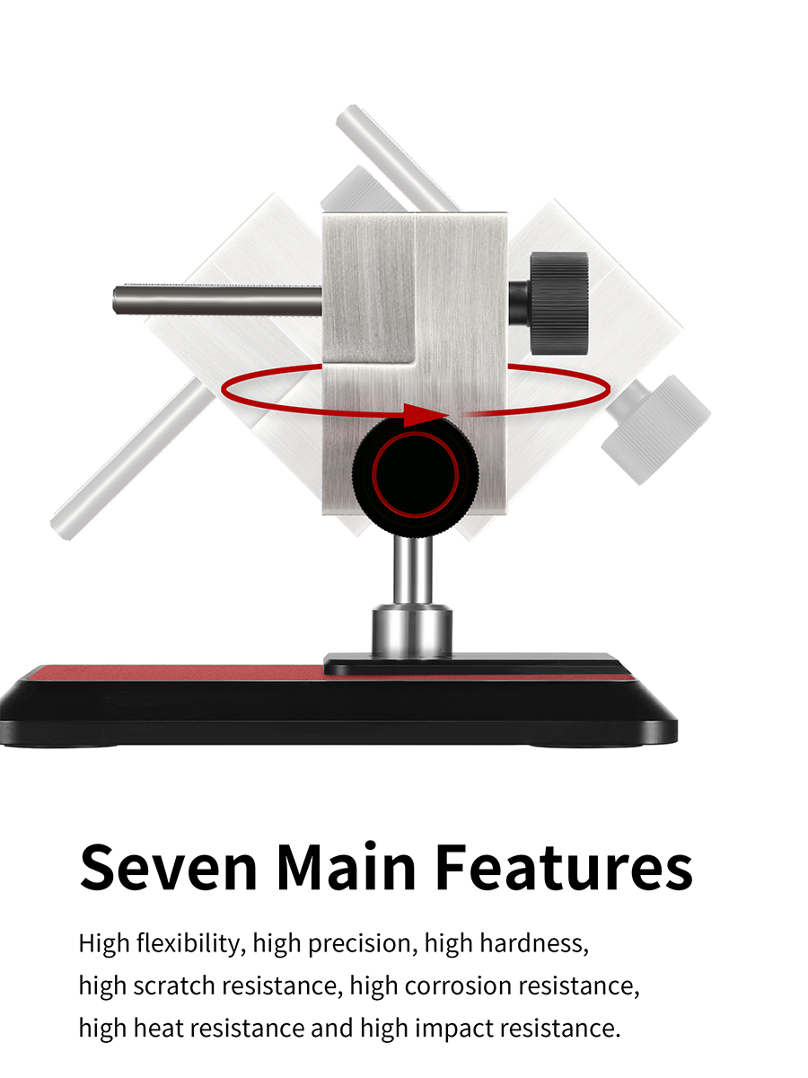 Material: 304 Stainless Steel (clamp heads, rods); Steel (pedestal); Aluminum (spherical vise valve, antirust strip)