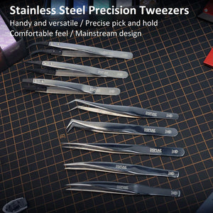 A high-precision tweezer is especially important to the model maker when making a model. DSPIAE high-precision tweezers are applicable to clamping various tiny precision parts. The thickening design can guarantee the stability of the tweezers in use. The arc design can ensure that it is not likely to see bouncing off or other likely cases when clamping any parts.