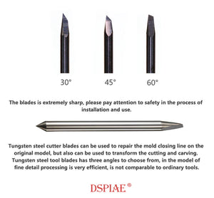 The tool blade is made of tungsten steel, and after several quenching processes, the blade hardness can reach HRC 85~90 strong and durable. The cutter head can cut and carve plastic or paper products.