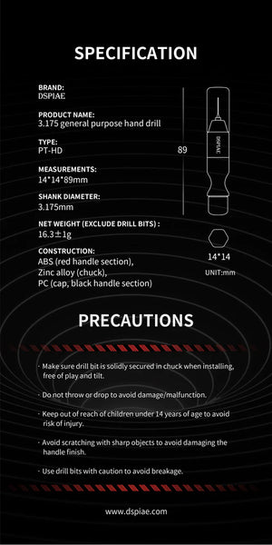 DSPIAE PT-HD 3.175mm General Purpose Hand Drill Set