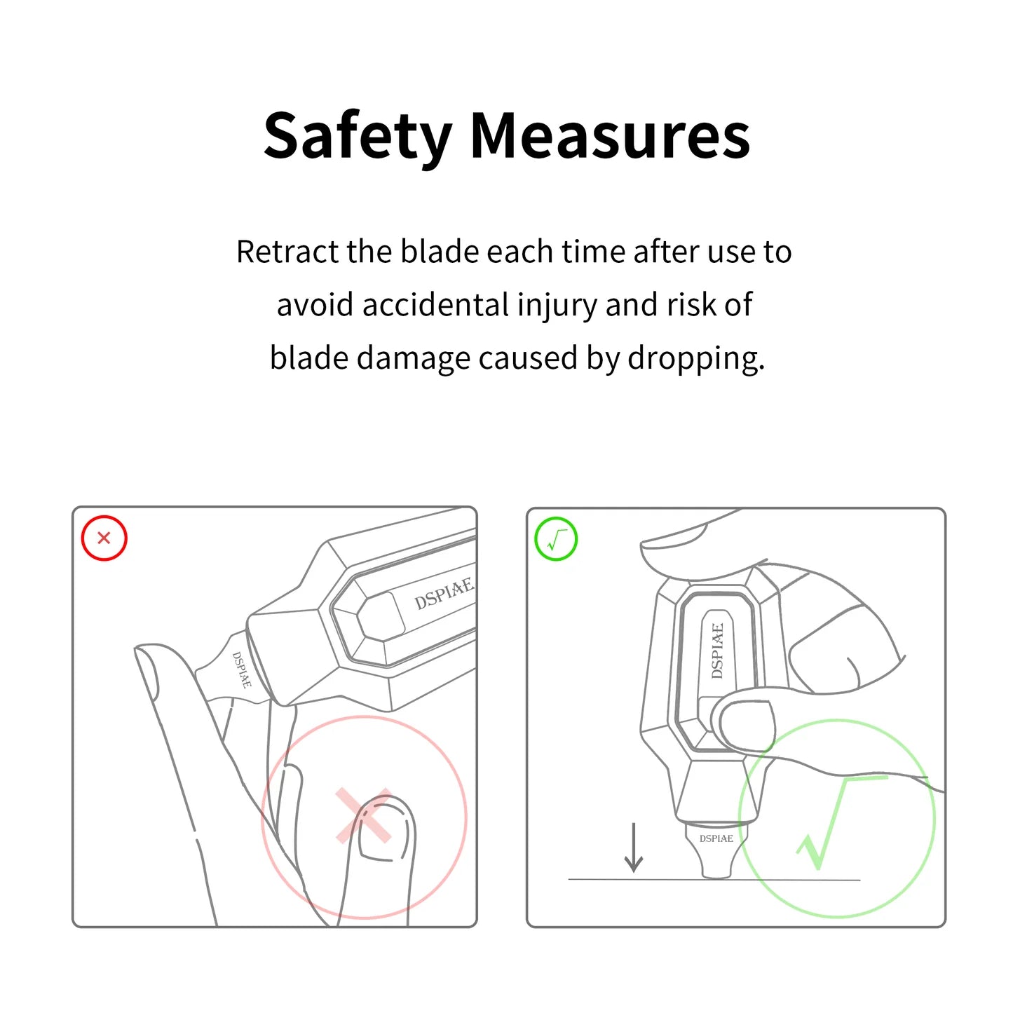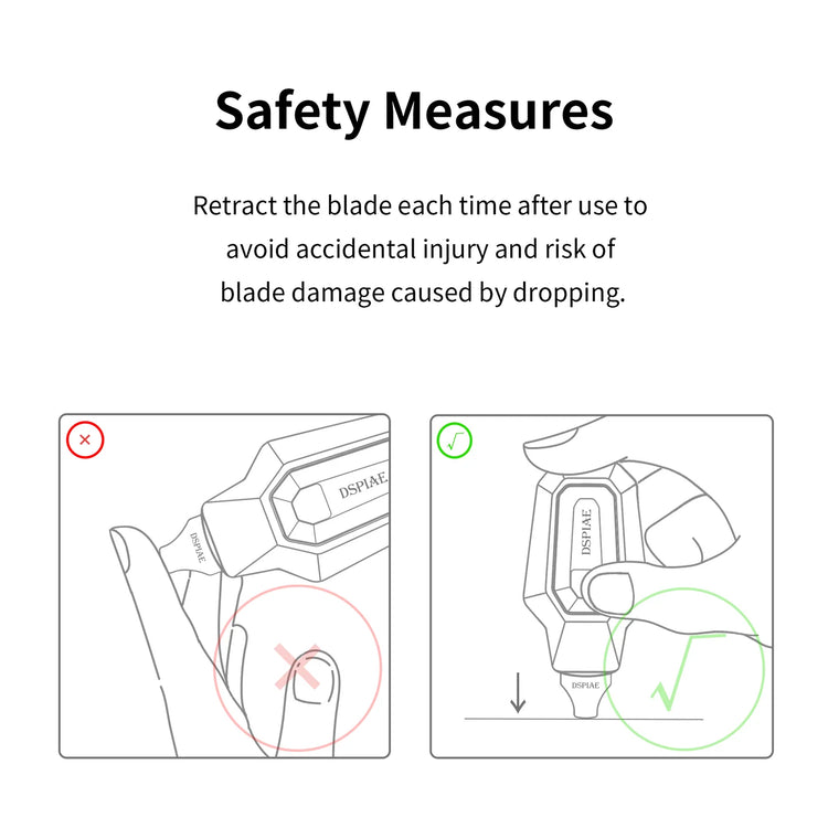 Retract the blade each time after use to avoid accidental injury and risk of blade damage caused by dropping.