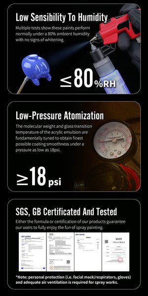 Personal Protective Equipment (gloves, facial masks/respirators/air ventilation) is required when using with an airbrush.