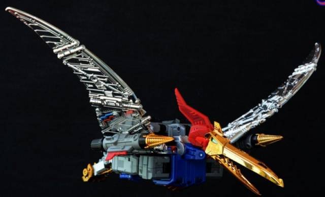 Fans Toys has added the next figure to it's line of Diobots, their version of the popular Dinobots! It's a series or robots that convert to Dinosaurs. FT-05 is Soar, a robotic Pteradactyl that converts to a robot. Pictures are of prototypes and final versions will vary. FT-05 will be painted blue.