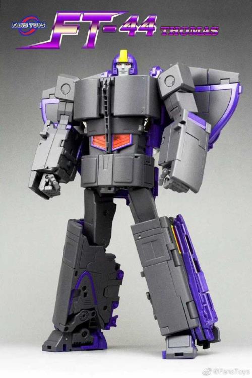 FT-44 Thomas, from Fans Toys, is a highly articulated, fully transformable robot that that stands about 9 inches tall. Armed with a blaster rifle, Thomas is a triple changing robot able to transform to either a space shuttle or train.