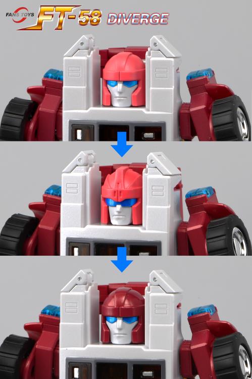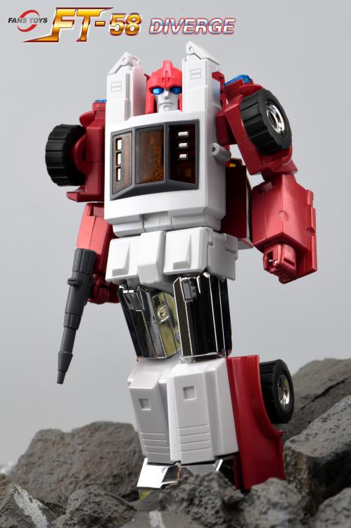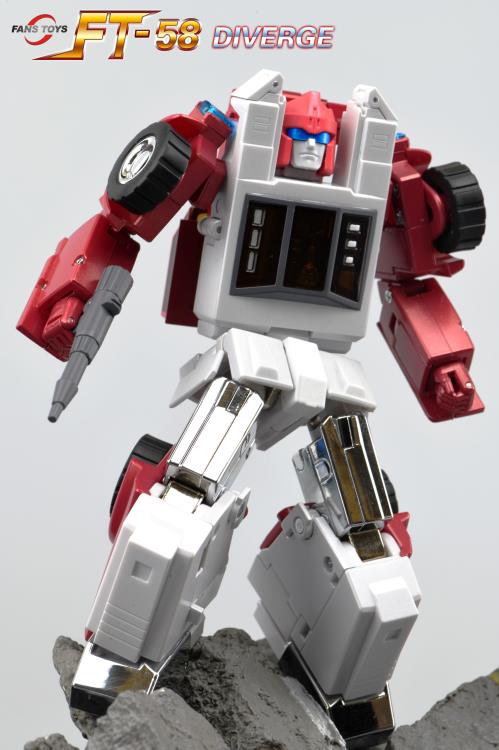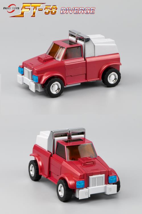Fans Toys FT-58 Diverge is a highly detailed figure with die-cast and plastic parts. Diverge converts from a small vehicle to robot and back. Figure comes with weapons and accessories.