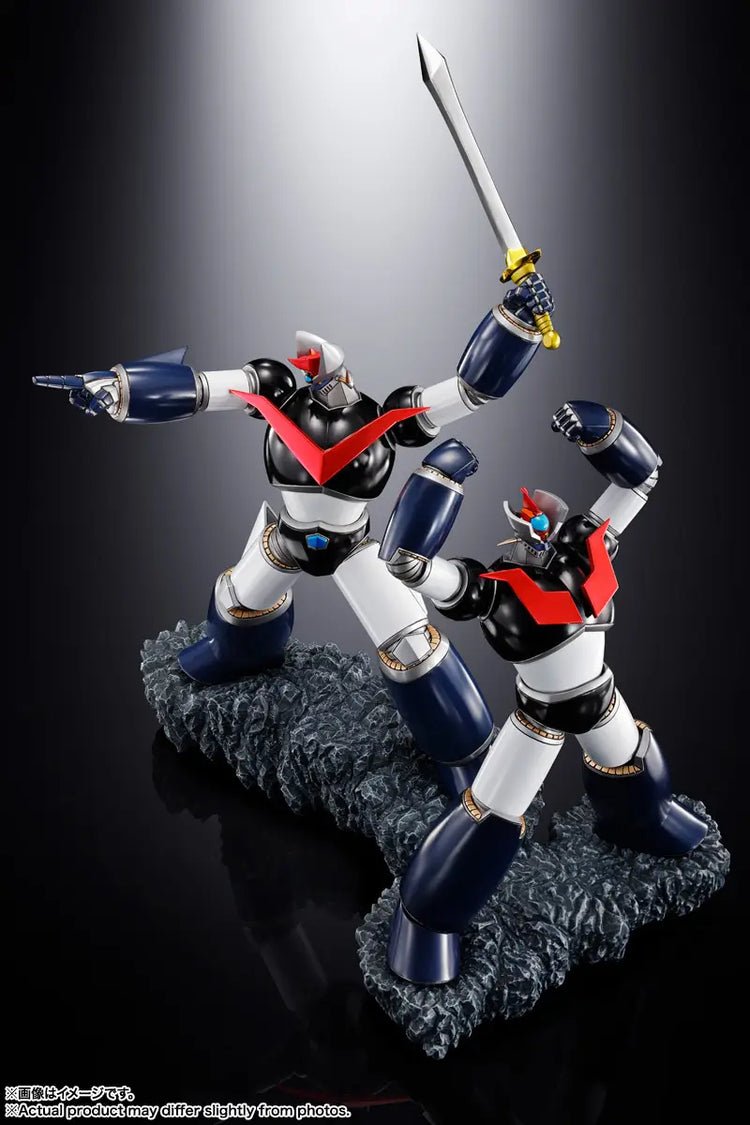Following UFO Robot Grendizer and Jeeg Robot, the third dynamic robot release highlighting the bold sculpting of master creator Tomonobu Fuchi is Double Mazingers, a two-figure set featuring Mazinger Z and Great Mazinger. Each robot is fully independent, allowing for flexible display options. Arrange them side by side as iconic heroes or pose them back-to-back for a powerful visual impact. Along with the signature red chest radiators shared by both Mazingers, Great Mazinger’s Mazinger Blade stands out with a stunning chrome finish on its silver blade and gold guard. Assemble and display your own heroic Double Mazinger duo.