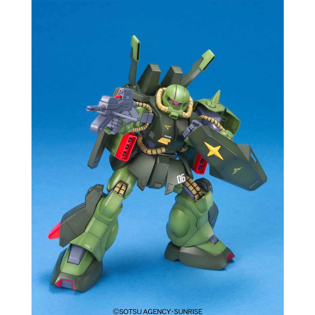 The Hi-Zack was a sort of "new and improved" version of the Zaku II, making its first appearance in Z Gundam. The lighter alloy used for its construction allowed for the installation of larger fuel tanks and more powerful thrusters, improving manoeuvrability in combat; this, plus easy maintenance, made the machine was popular among its pilots. Bandai has reproduced this fantastic machine (designed by Kunio Ohkawara) in a Master Grade kit with their usual attention to detail and stupendous quality! Dry-transfer decals and stickers are included for details.