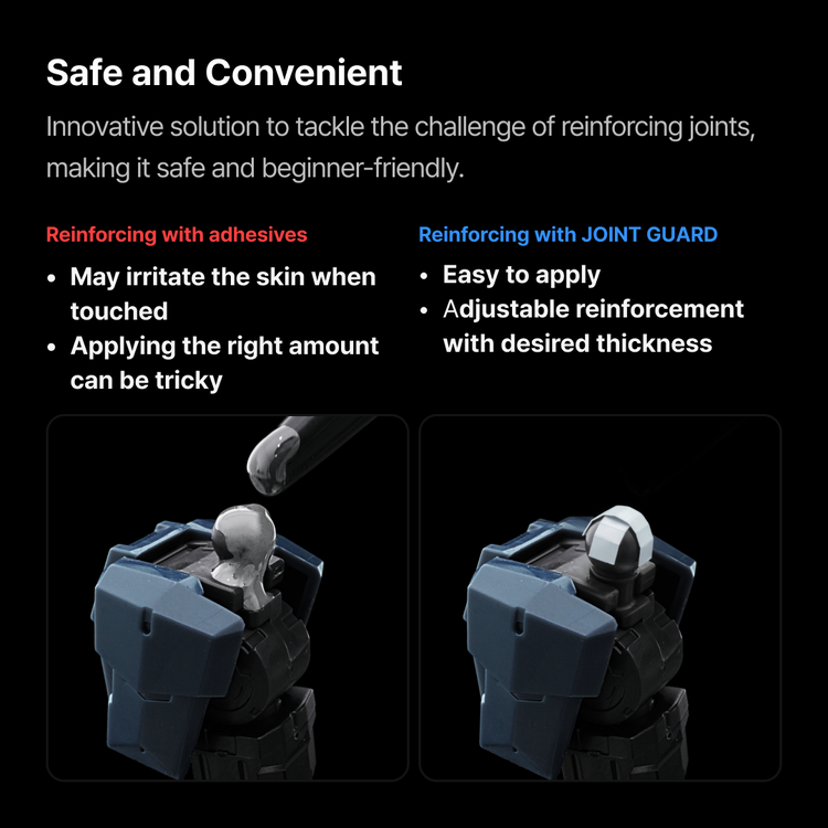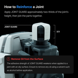 Never suffer from loose joints again! Simply apply the GUNPRIMER Joint Guard precut joint guard PET stickers and reinforce ball joints, pegs and more! Perfect for using with Gunpla and other plastic model kits!