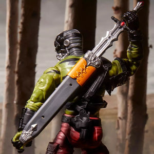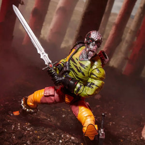 Darklon is a formidable villain unburdened by things like “principles” and “ethics.” A distant cousin of the Destro clan, he is the last of a long line of privateers, mercenaries, and investment bankers. This highly articulated G.I. Joe Darklon figure includes 6 character-inspired accessory pieces including alternate head, knife, sword, removable sheath, and weapon accessories.