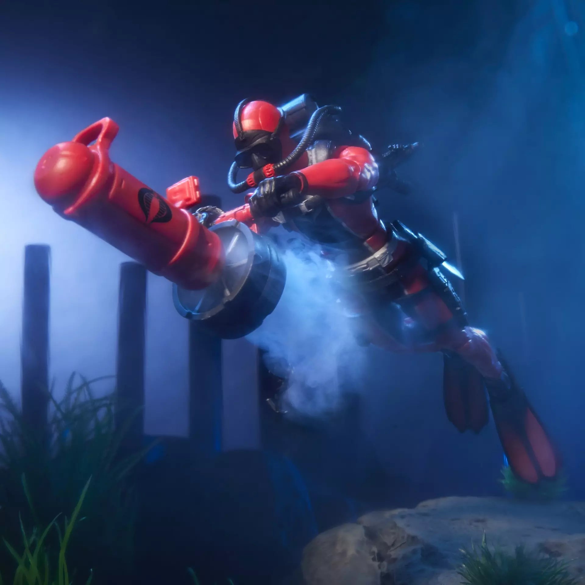 G.I. Joe is a highly skilled, on-demand, special operations force of men and women from around the globe tasked with defending the world from Cobra, a ruthless criminal organization bent on total domination. The brave members of G.I. Joe are prepared to seek out Cobra in any environment on the planet. From hostile jungles to ice-clad arctic peaks…wherever there’s trouble, G.I. Joe is there. New to the G.I. Joe Classified Series line, the G.I. Joe Diver and Cobra Diver figures come ready for adventure, with multiple points of articulation for high poseability. This Deluxe Set is bursting with 27 accessory pieces. Each diver figure includes a mask with breathing hoses, alternate head, diving knife, fins, speargun, machete, backpack, and weapon accessories. The set also includes a submersible with manually spinning propellor and the M.A.S.S. Device Heavy Water Catalytic Element. G.I. JOE and HASBRO and all related trademarks and logos are trademarks of Hasbro, Inc.