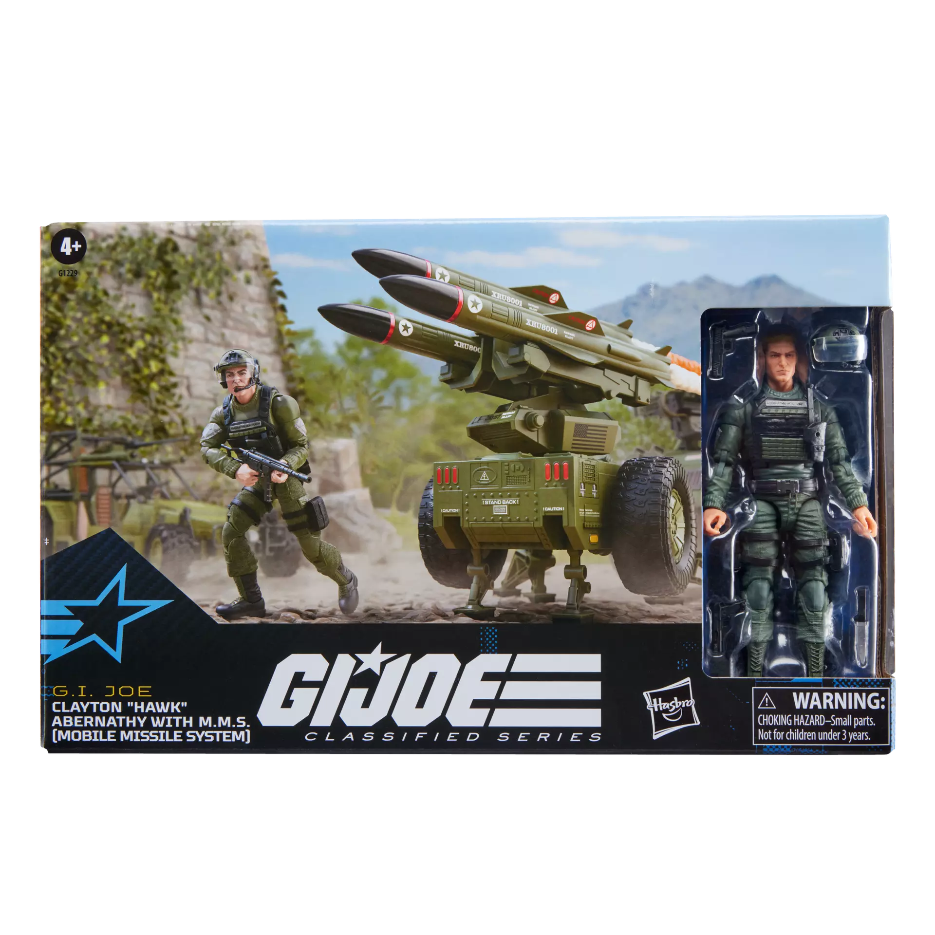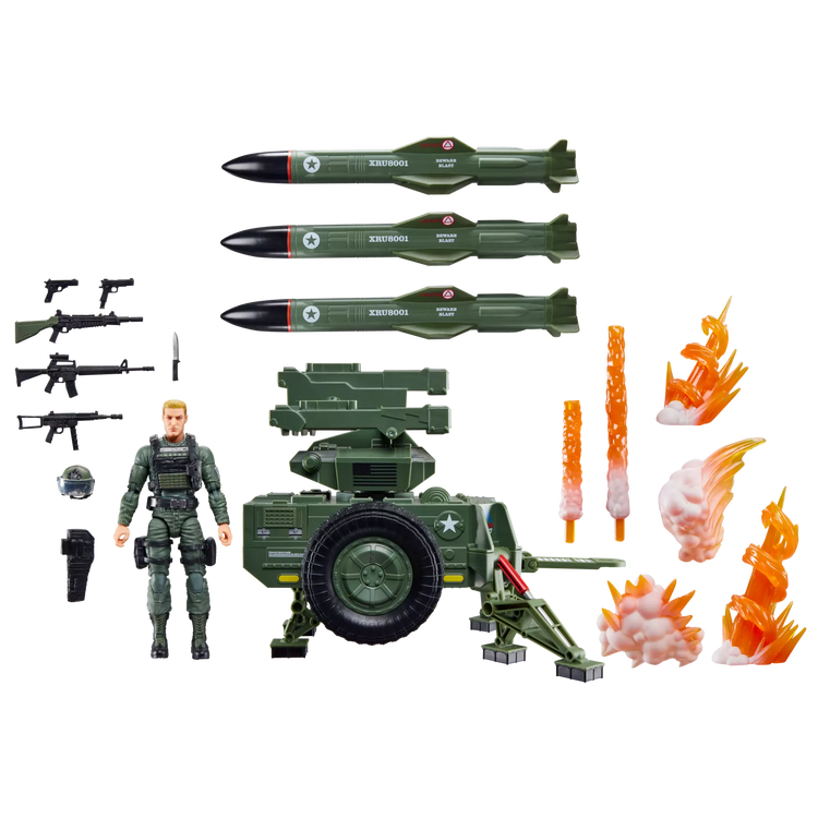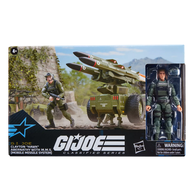 New to the G.I. Joe Classified Series line, Clayton “Hawk” Abernathy with M.M.S. (Mobile Missile System) comes ready for adventure, with multiple points of articulation for high poseability. This Clayton “Hawk” Abernathy figure contains 10 character-inspired accessory pieces including knife, helmet with visor, detachable holster, and weapons accessories. The M.M.S. includes 15 pieces including 3 missile accessories, missile base that elevates and swivels, detachable control panel cover, folding stabilizer leg, folding support legs, free-rolling wheels, adjustable tow hitch and 6 blast effects