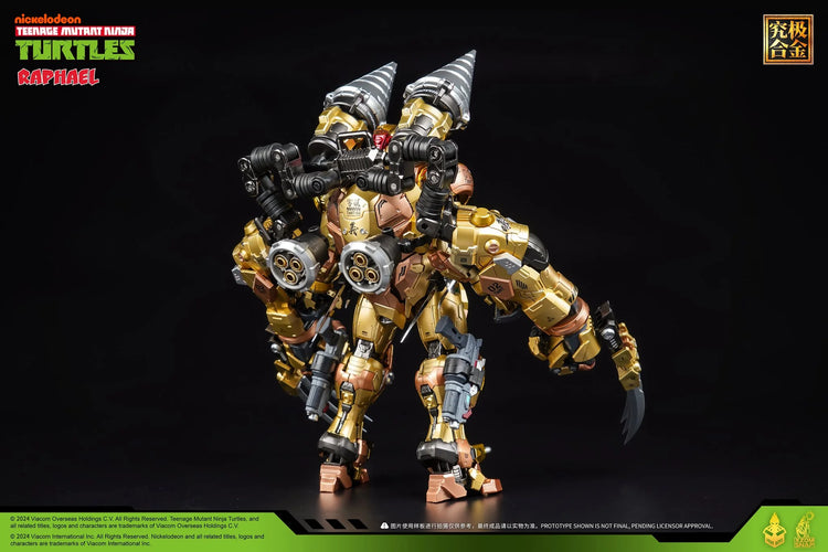 The TMNT 03, Raphael's mecha, come with special mobility and offensive equipment tailored to Raphael's personality traits. By combining different weapons and equipment, it can take on various forms to suit its various means of attack.