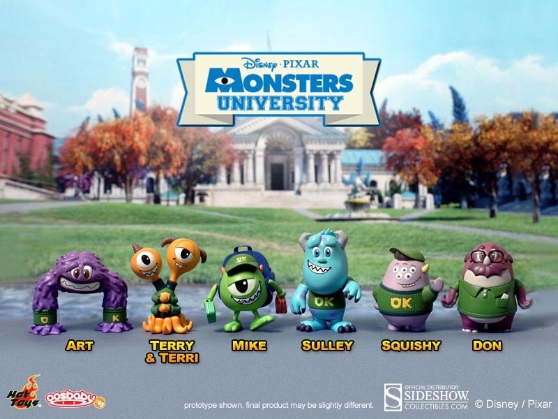 Sideshow Collectibles is proud to present Hot Toys' new cosbaby series, from Disney-Pixar's Monsters University. Each cosbaby stands approximately 3 inches tall, capturing your favorite Monsters University characters in baby form with unique designs.