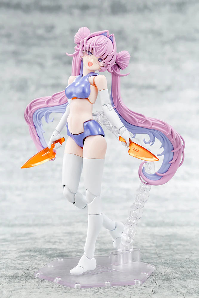 The second unit, Medic, is a nurse-like Megami Device that features a cap for the head and ampoules. Her delicate, long twintails hair style is perfect for compassionate, expressive characters. Clear molded glasses are included.