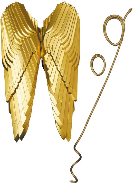 Based on the Wonder Woman 1984 film, the MAFEX Wonder Woman in Golden Armor is a highly detailed figure. The Golden Armor Wonder Woman figure features a high level of articulation for acting out all of your favorite scenes, along with closed and opened wings, and a golden Lasso of Truth. Two head-sculps are included, with or without the Golden Armor helmet.