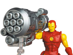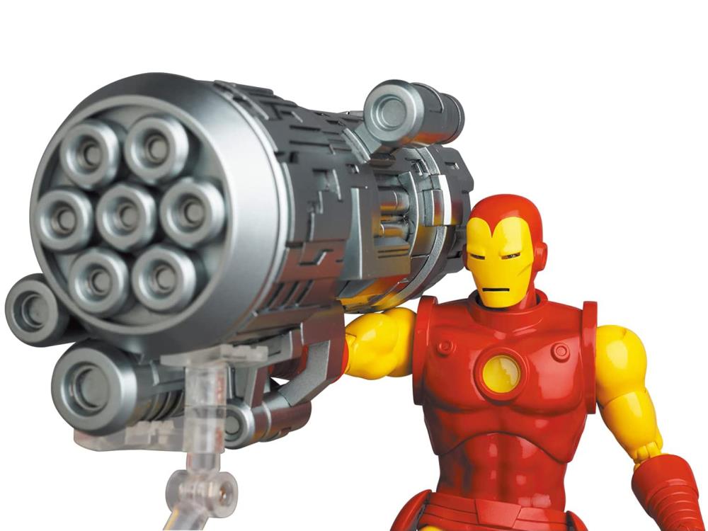 Based on his appearance from the classic Marvel comics, Iron Man makes his return to the MAFEX figure line! He wears his original yellow and red color scheme and features blast effects, his jet skates, the Proton Cannon, and an alternate unhelmeted Tony Stark head.