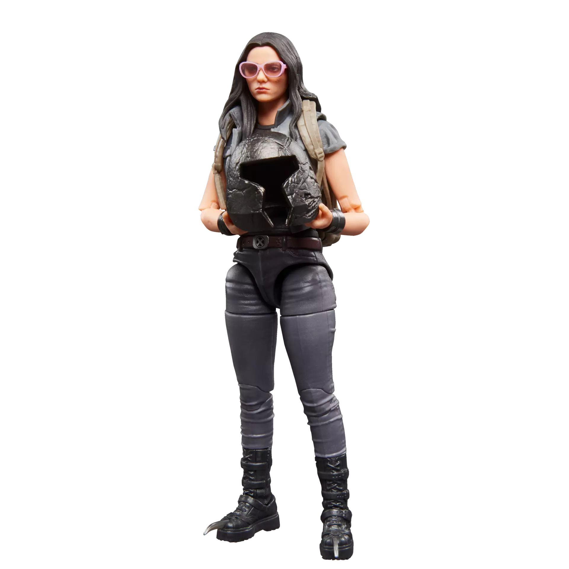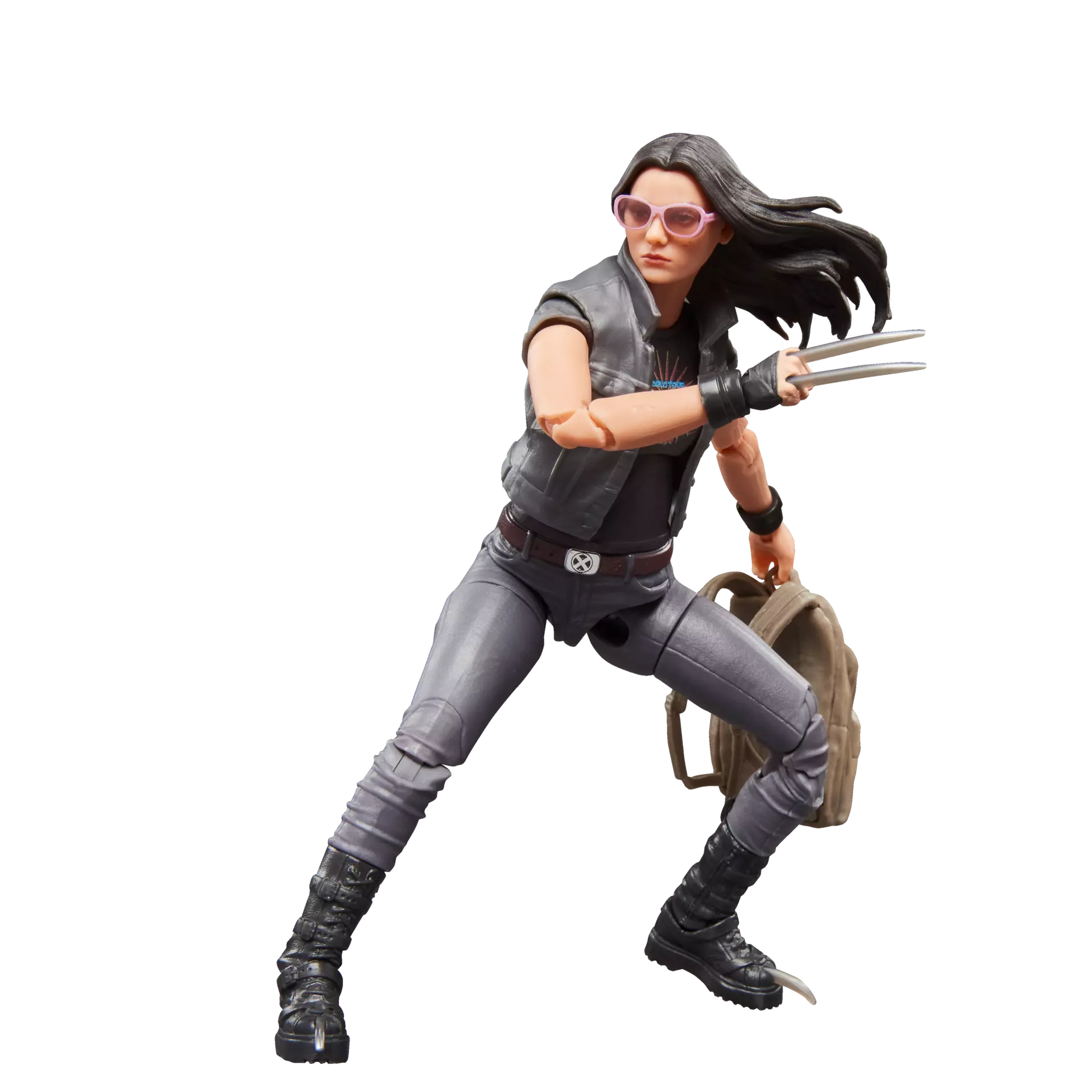 X-23 figure is fully articulated with premium design and poseable head, arms, and legs. Marvel action figure set comes with 6 accessories, including alternate head and hands to display her with or without claws and sunglasses.