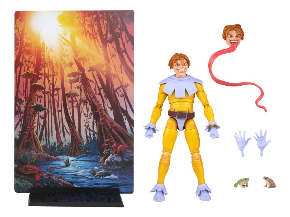 The Series 1 Marvel’s Toad figure comes with 5 accessories, including alternate head with his signature mutant tongue, and a comics-inspired reversible backdrop and stand for display!