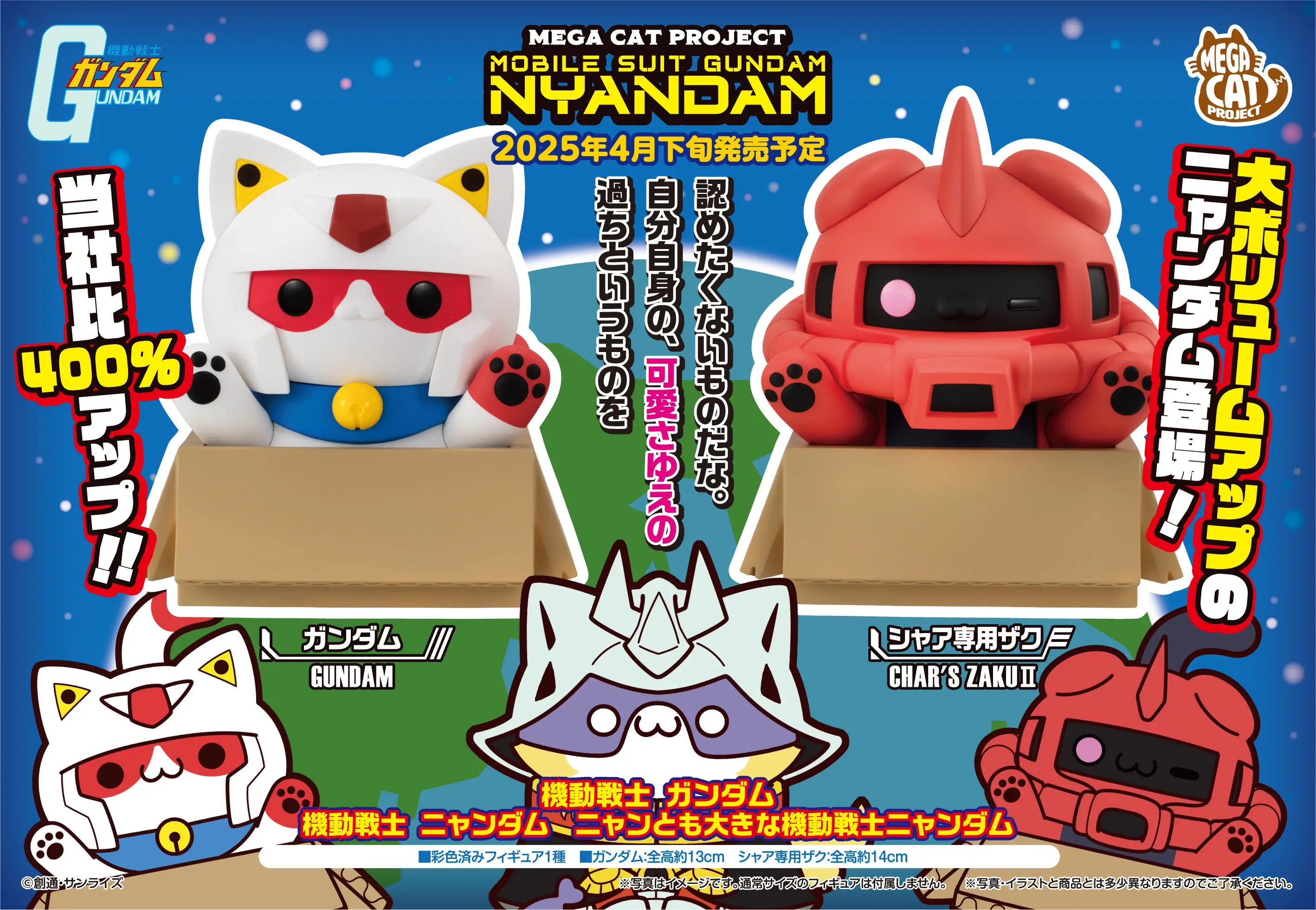 Bigger is always better -- especially when the MEGA CAT PROJECT brings Mobile Suit Gundam to The Big Series! The Big Series NYANDAM Char's Zaku is a larger scale of the original MEGA CAT PROJECT Nyandam Char's Zaku, the super adorable reimagined cat version of the same mobile suit from Mobile Suit Gundam, and it comes out of the cardboard box that cats love to play in!