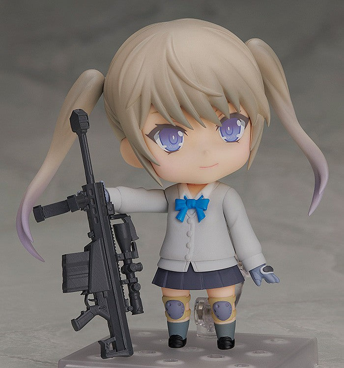 A Nendoroid-sized Little Armory anti-materiel rifle is included and she comes with a special neck joint and base allowing her to be displayed taking aim in a prone position! Other optional parts include a muzzle flash part to connect to the rifle as well as impact effect parts to easily display her in shooting poses!