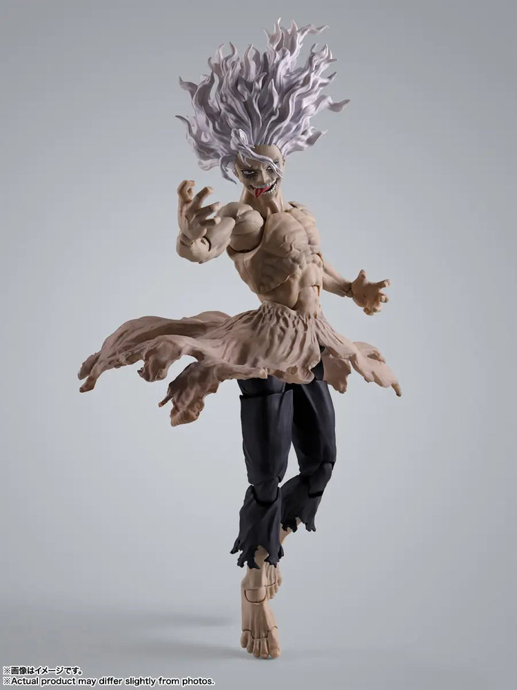 The third villain in the S.H.Figuarts My Hero Academia line is here, Tomura Shigaraki! Based on his appearance near the series' end, this figure features four facial expressions, four pairs of hands, alternate waist and hair parts, and a cloth cape. With articulation designed for dynamic posing, it perfectly captures Shigaraki’s menacing presence.