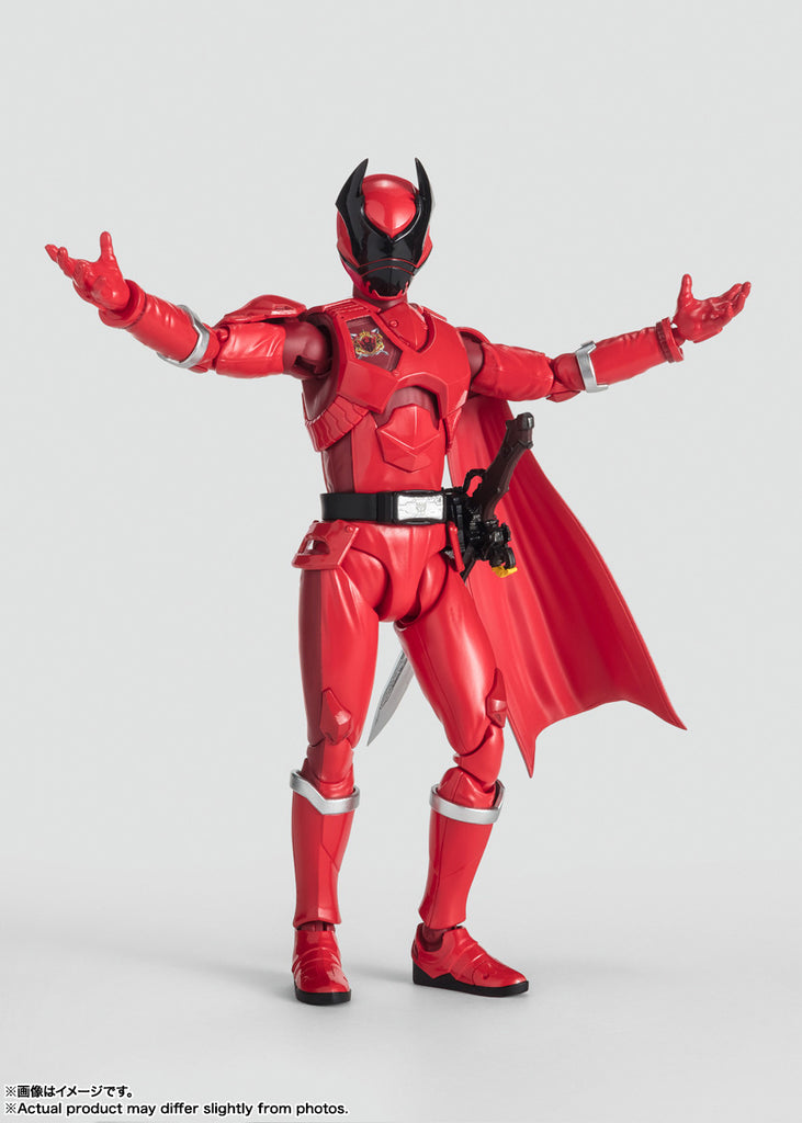 Kuwagata Ohger from "Ousama Sentai King Ohger" is brought to life in a new sculpt in the S.H.Figuarts lineup! The figure intricately captures the different textures of each body part and finely represents the emblem on the chest. The soft parts of the left shoulder cape are reproduced to maintain a balance between proportion and articulation, allowing for various posing options. The OhgerCalibur is also included so you can recreate a wide range of dynamic poses!