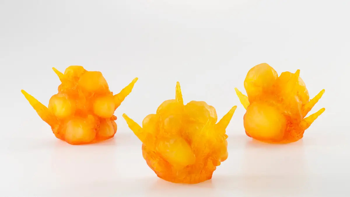 Recreate powerful blast scenes with the new TAMASHII EFFECT EXPLOSION parts, designed to capture the instant of detonation. Ideal for dramatic entrances or intense battle displays, the smaller explosion pieces feature varied shapes and can be combined with TAMASHII STAGE (sold separately) to form a larger explosion. This set includes three explosion effects.