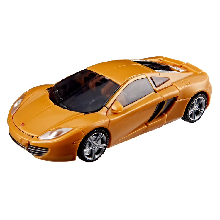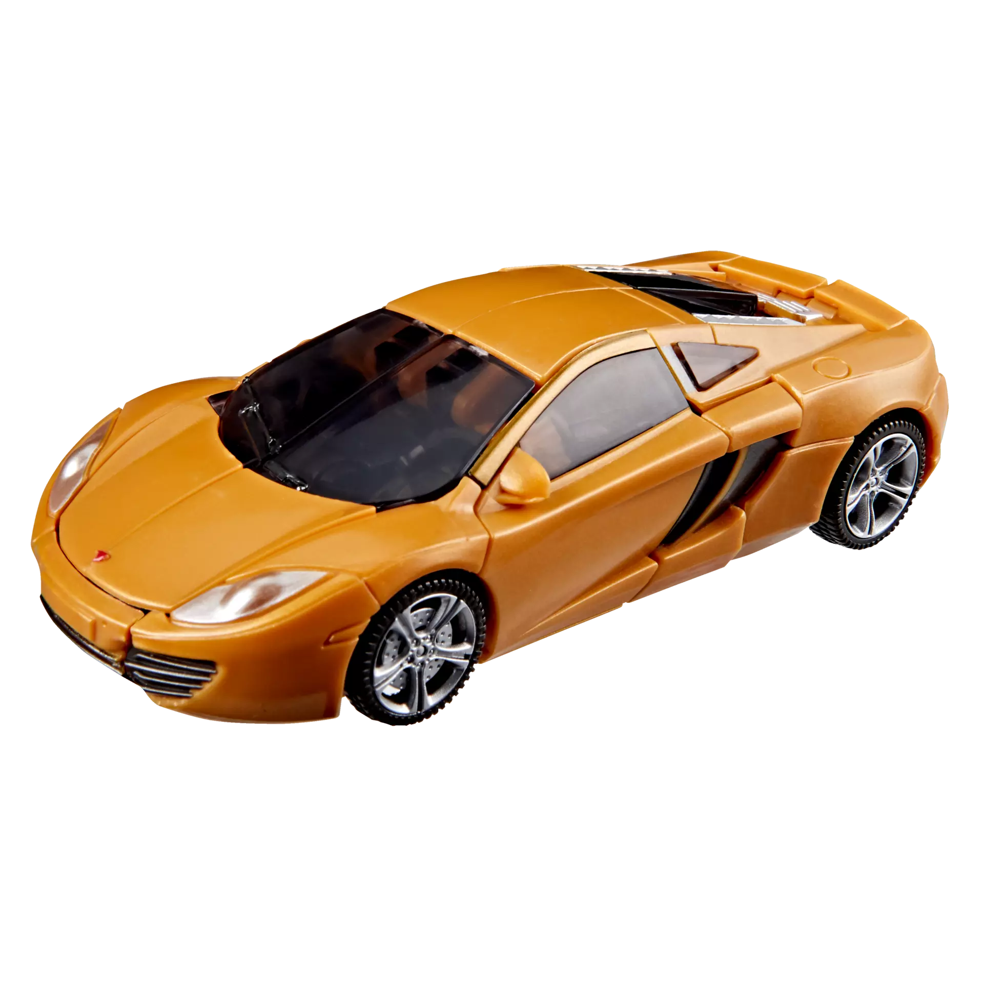 Transformers Studio Series toys are collectible action figures that feature movie-inspired details and accessories. Convert the Studio Series Transformers action figure from robot to McLaren MP4-12C car mode in 17 steps. The figure has articulated head, arms, and legs for action poses.