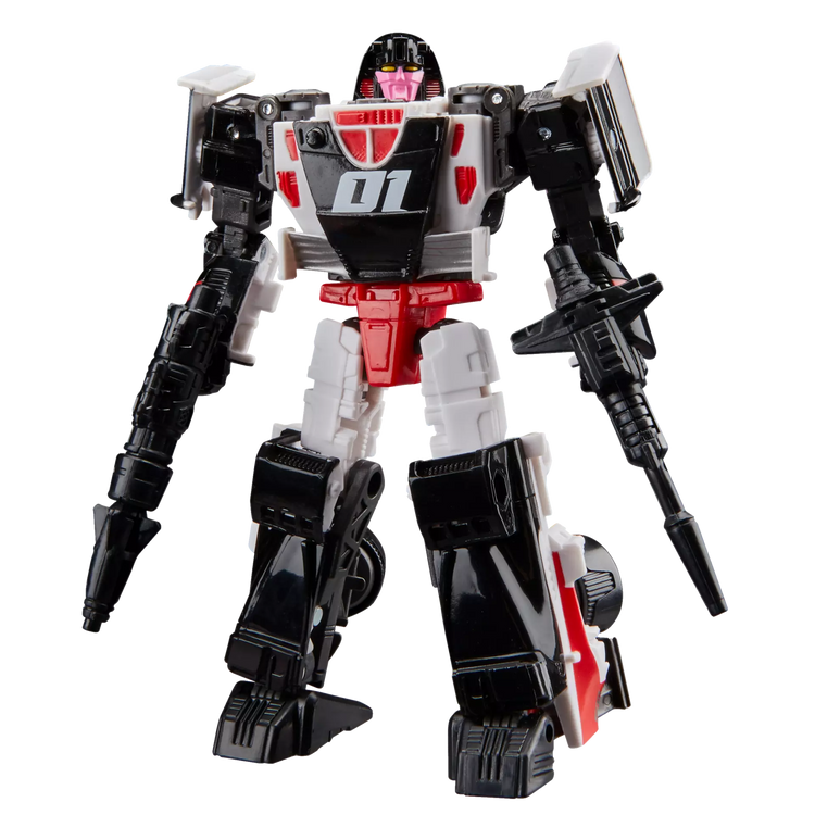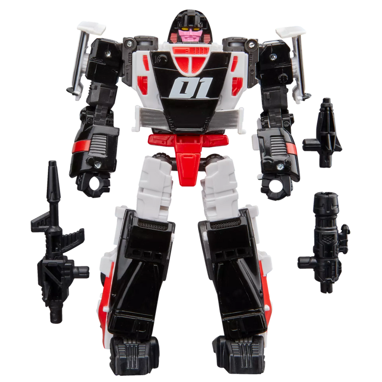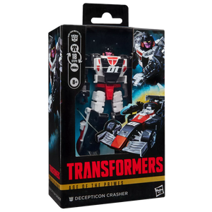 Unite your favorite characters from across the world of Transformers robots into your collection with the Transformers Age of the Primes Deluxe Class Decepticon Crasher action figure! This 5.5-inch Decepticon Crasher action figure converts between robot and sports car modes in 18 steps and includes 2 blaster accessories that attach in both modes.