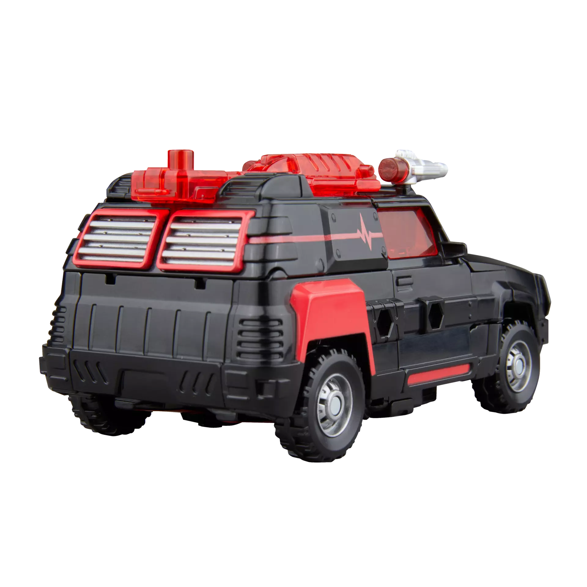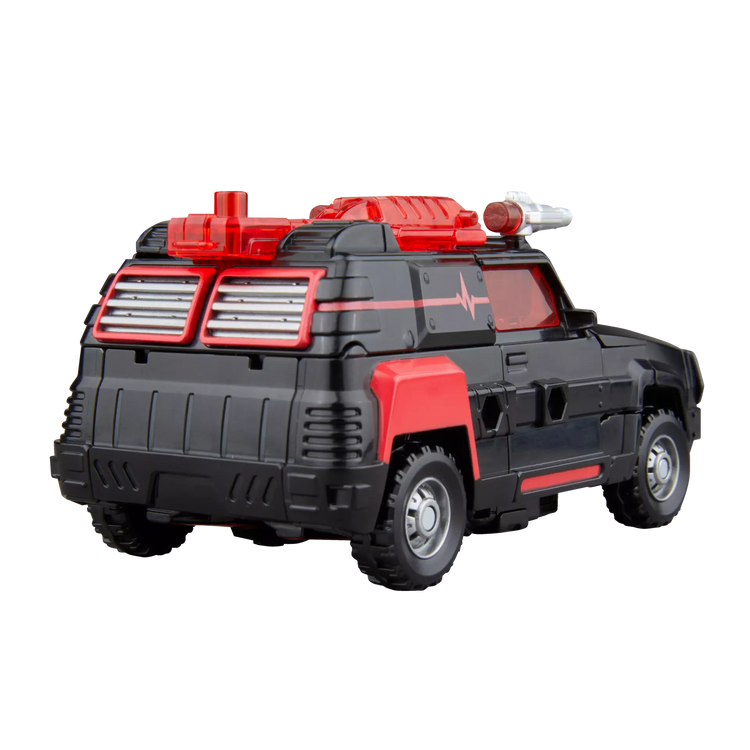 The 7-inch (17.5 cm) figure converts from robot action figure to offroad vehicle in 16 steps. With intricate poseability and attachable accessories like hand missiles and a cannon, this Flatline action figure makes an awesome addition to any collection.