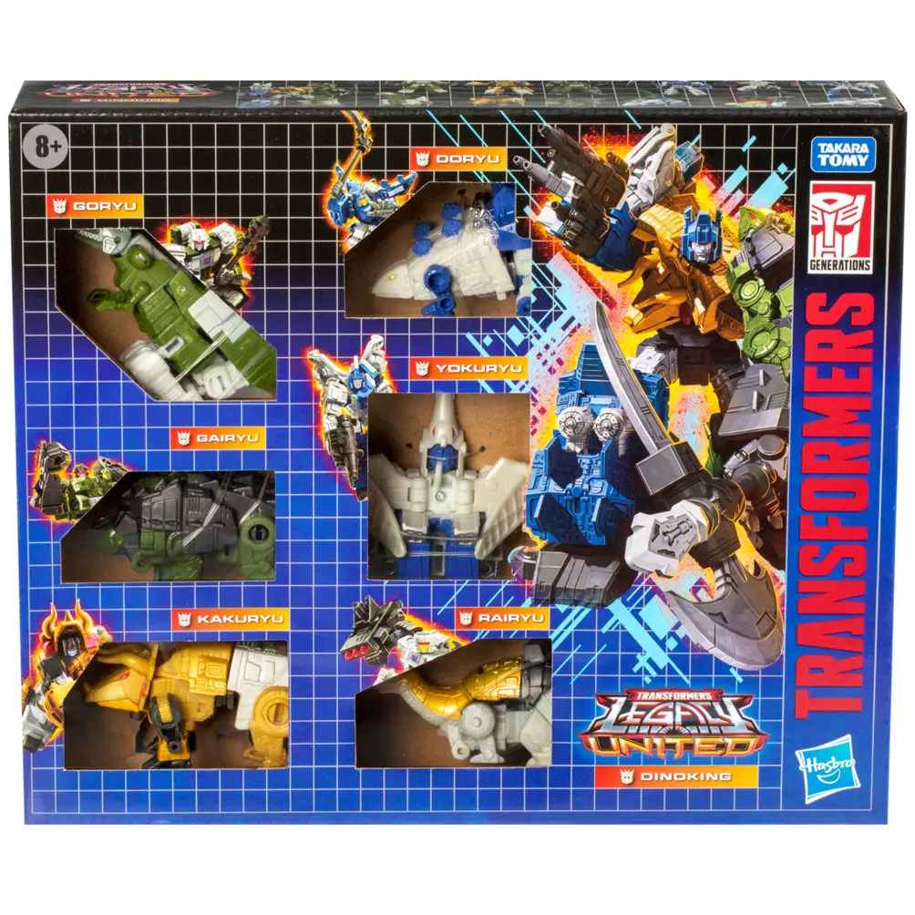 Unite your favorite characters from across the world of Transformers robots into your collection with the Transformers Legacy United Dinobot Dinoking Multipack! Yokuryu figure converts between robot and dinosaur mode in 5 steps. Rairyu figure and Goryu figure each convert between robot and dinosaur mode in 7 steps. Doryu figure converts between robot and dinosaur mode in 10 steps. Gairyu figure converts between robot and dinosaur mode in 8 steps. Kakuryu figure converts between robot and dinosaur mode in 9 steps. Combine all 6 figures to create Dinoking action figure! They feature articulated head, arms, and legs for awesome action poses. Celebrate the last 40 years of Transformers history with Transformers Legacy action figures. Transformers Legacy opens the portal to a whole new universe of -- More Than Meets the Eye -- bringing together every Transformers generation like you’ve never seen before. Collect and combine different characters to create your ideal Legacy lineup.