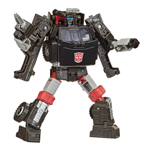 The good-humored Autobot defensive strategist, Trailbreaker, converts to classic camper truck mode in 18 steps. Includes a blaster accessory.