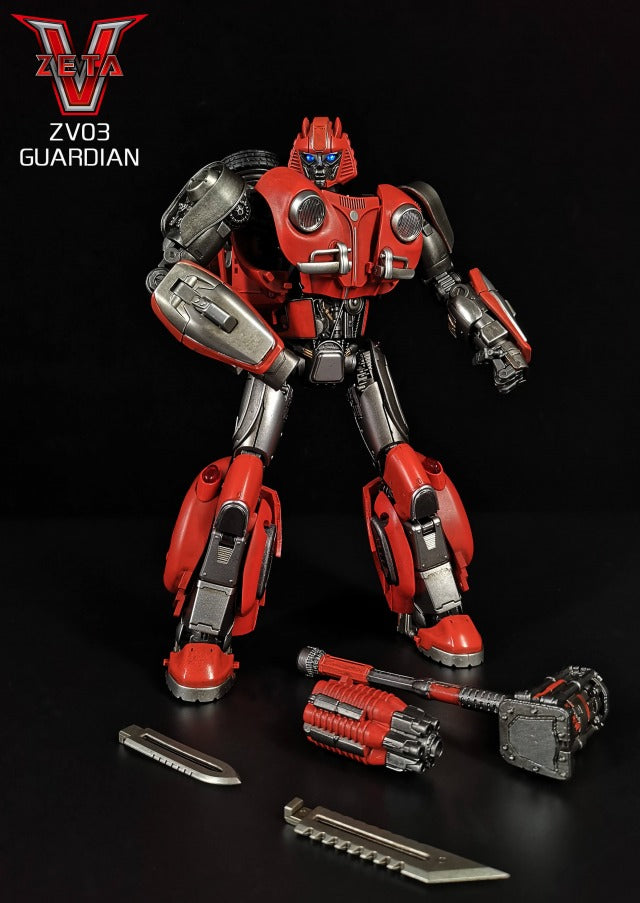 Zeta Toys proudly presents the new ZV03 Guardian! This figure comes with metallic painting and weathering effects. With lots of accessories including 2 swords, hand cannon, and hammer.